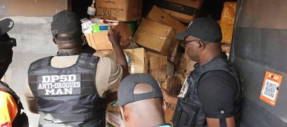 C’est grâce à l’exploitation d’un renseignement anonyme que les forces de l’ordre ont pu remonter la piste. Les investigations ont conduit à la découverte d’un magasin suspect, situé au petit marché de Danané, où était dissimulé un important stock de produits pharmaceutiques illicites.